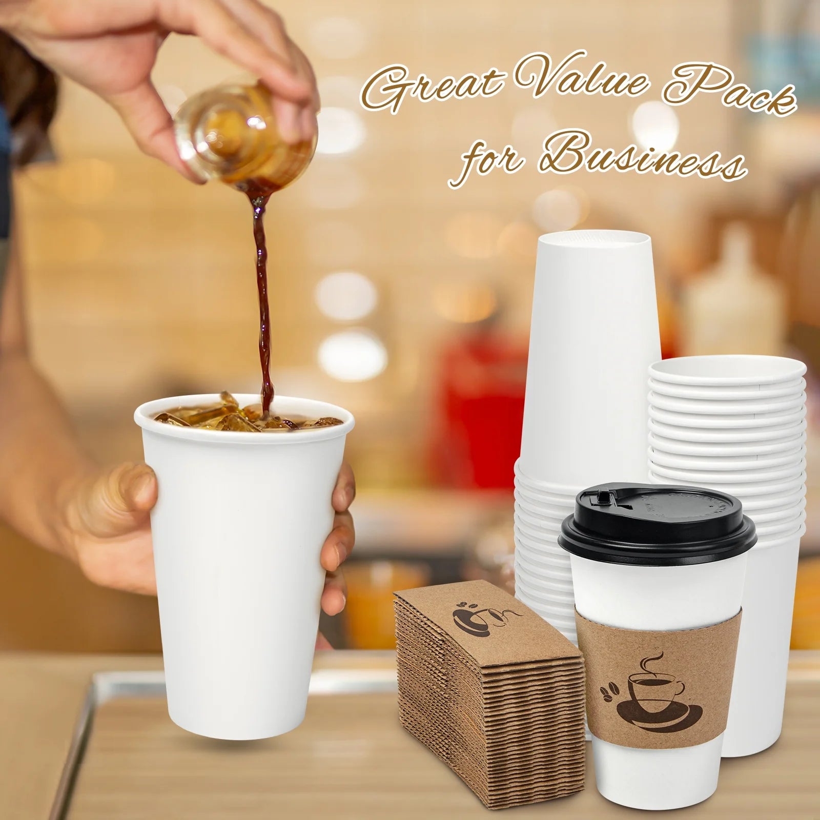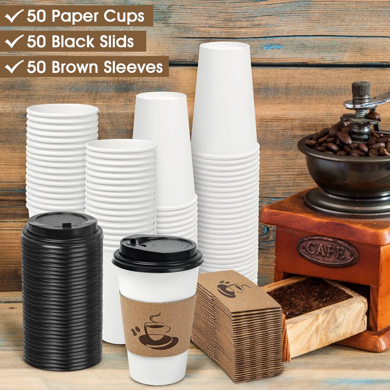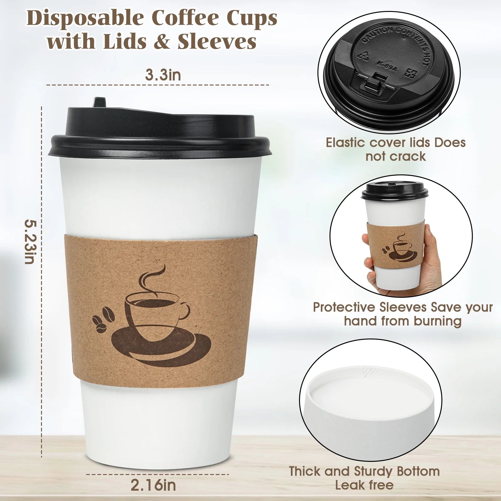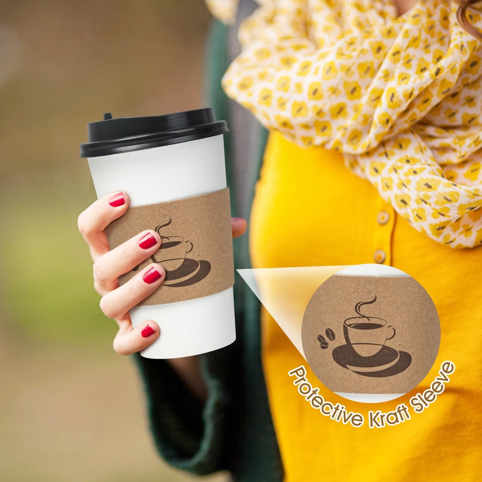 Disposable Paper Cups with Lids, Sleeve 16 Oz 50 Count Insulated