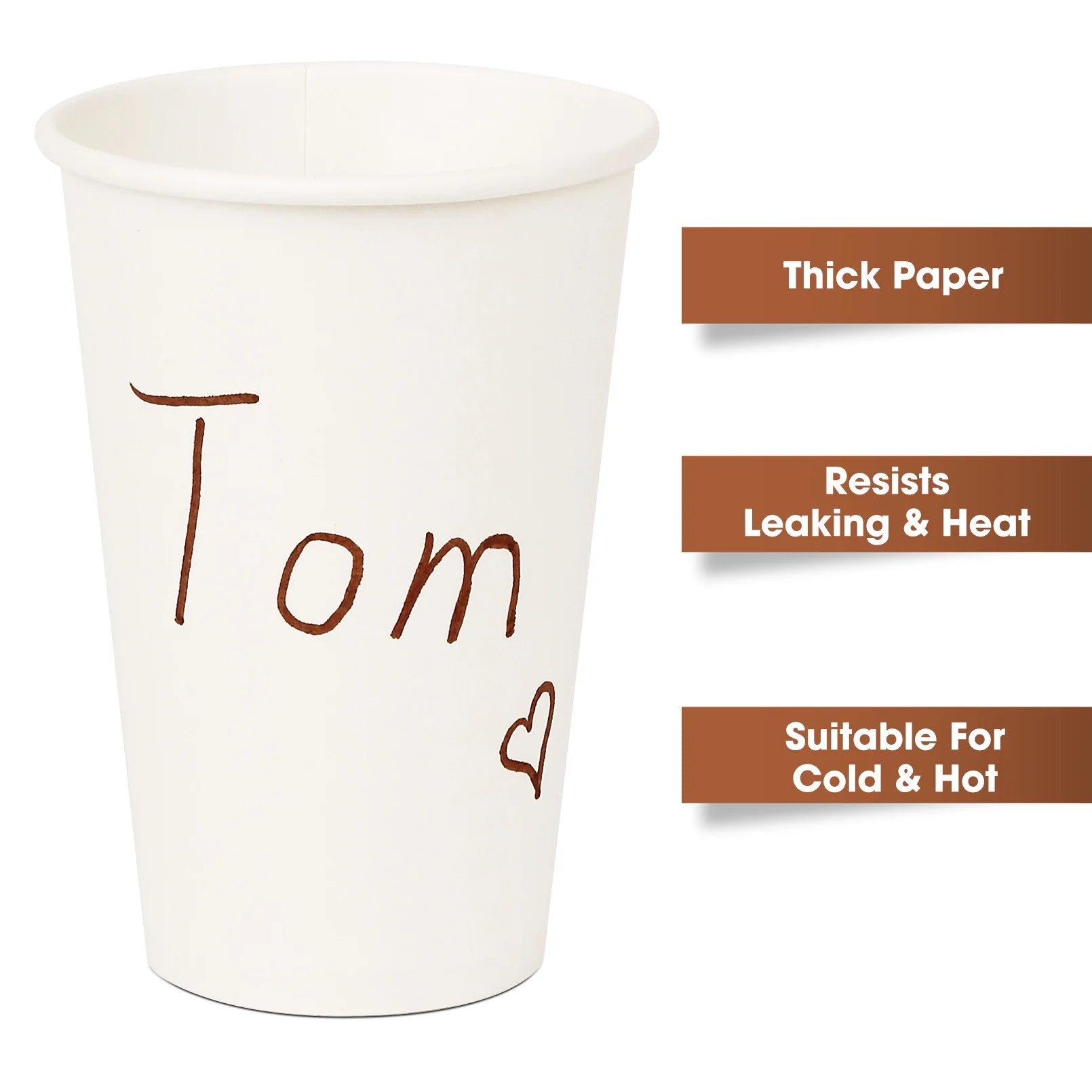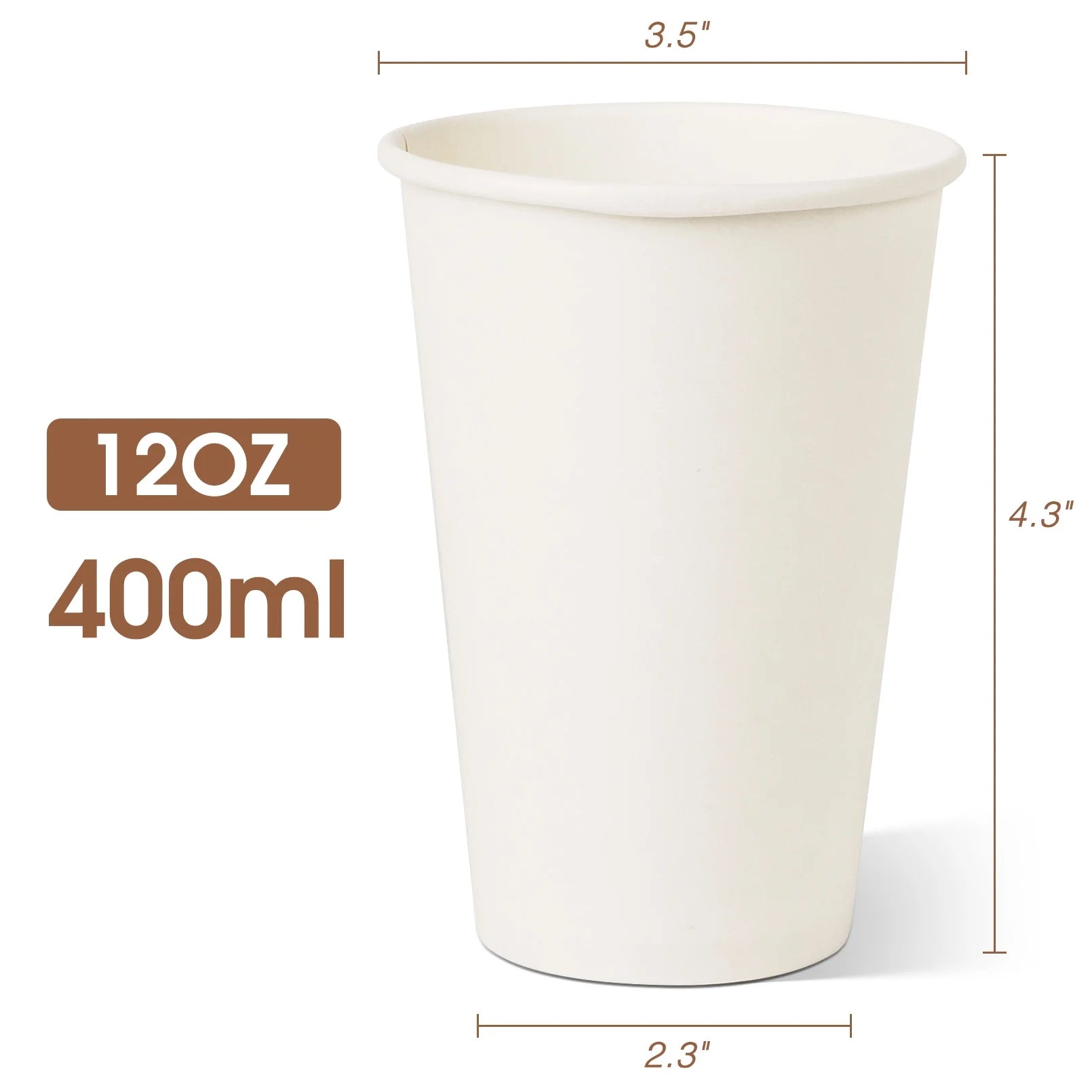 - Package of 100 Coffee Cups: These 12 oz disposable white coffee cups are very suitable for daily use, and are used to serve hot coffee, tea, hot chocolate. The coated polyethylene lining makes this a leak resistant paper cups that won't get weak or soggy.