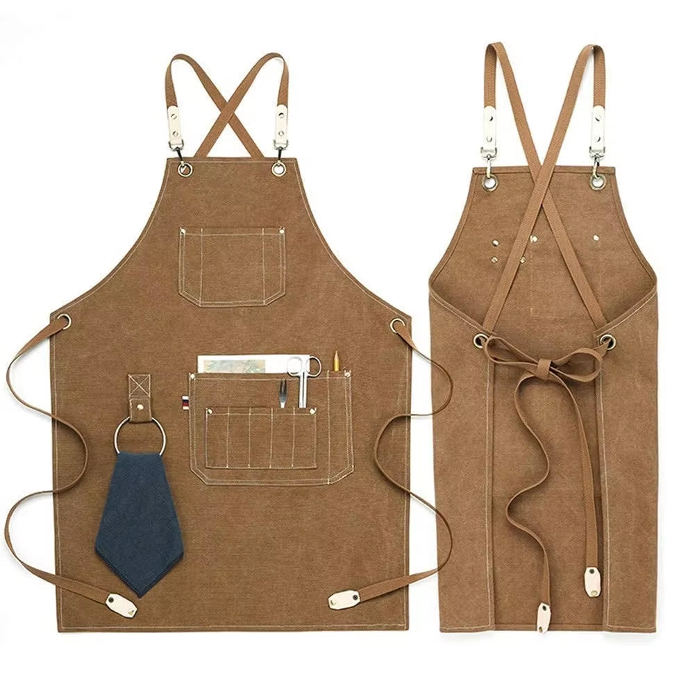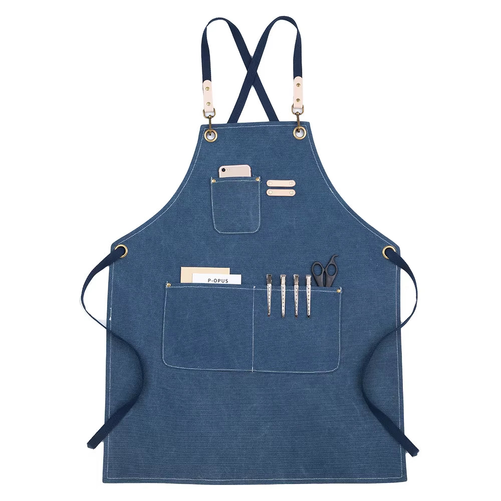 Kitchen Apron Heavy Duty Canvas Barber Work Aprons Unisex Cross Straps Adjustable Salon Hairdresser Bib PU Leather Apron for Men