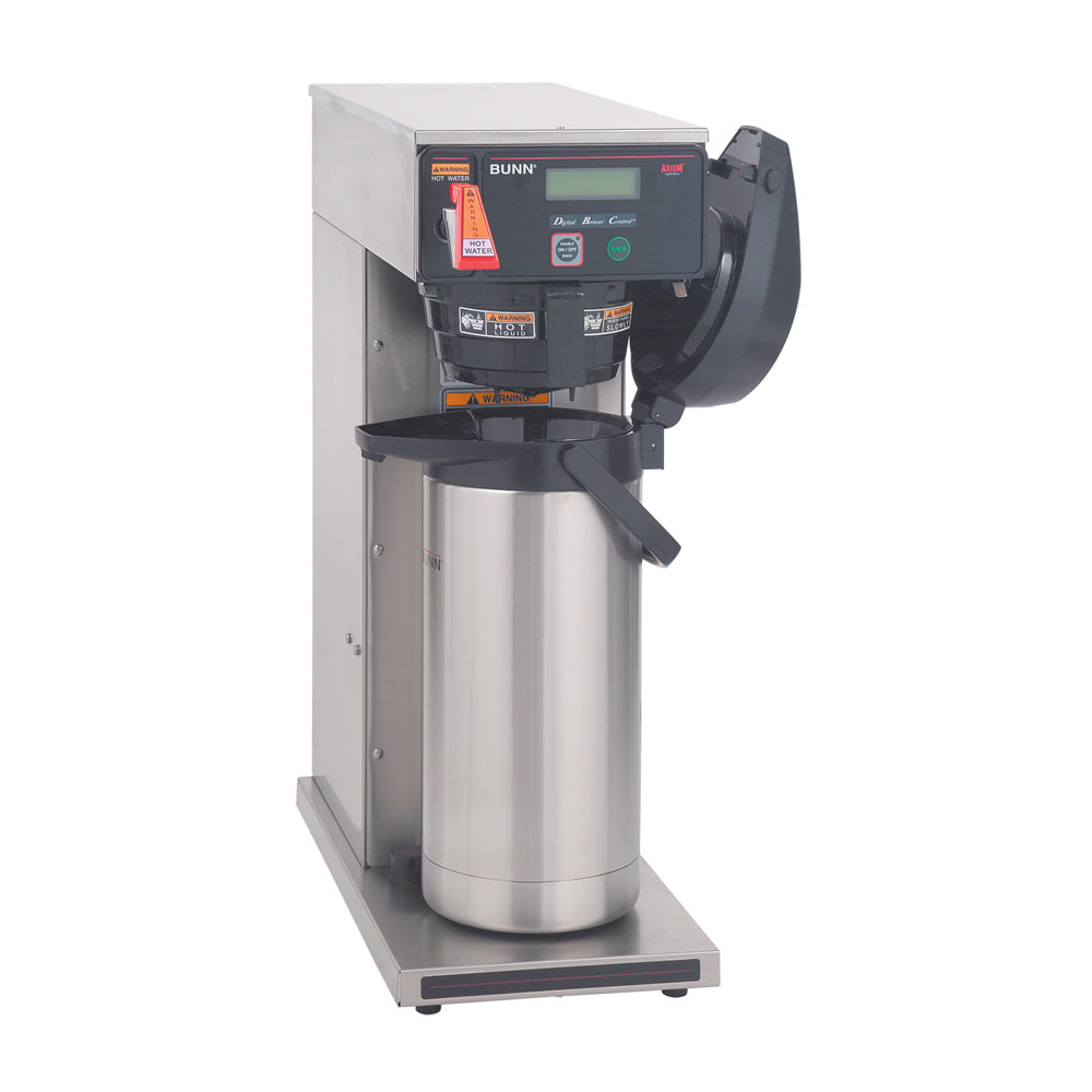 The BUNN AXIOM DV APS Dual Voltage Airpot Coffee Brewer with LCD offers a programmable digital temperature control coupled with innovative pre-infusion technology to provide optimum flavor extraction and a consistent, quality product for customers. An LCD display makes it easy to monitor temperature settings and batch information. Electronic diagnostics and a built in tank drain make cleaning and servicing simple. Flip a switch and change to 120 volt/12.5 amp, 120/208 volt/13 amp or 120/240 volt/15 amp. Airpot sold separately.