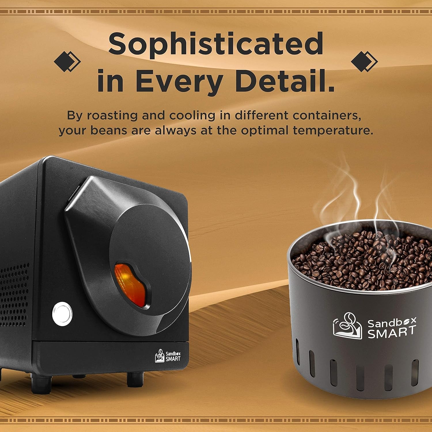 - App-Controlled Simplicity – Use the Sandbox Smart Roaster app to guide your roast step-by-step. Your roast profiles are automatically saved, making every session smarter and easier.