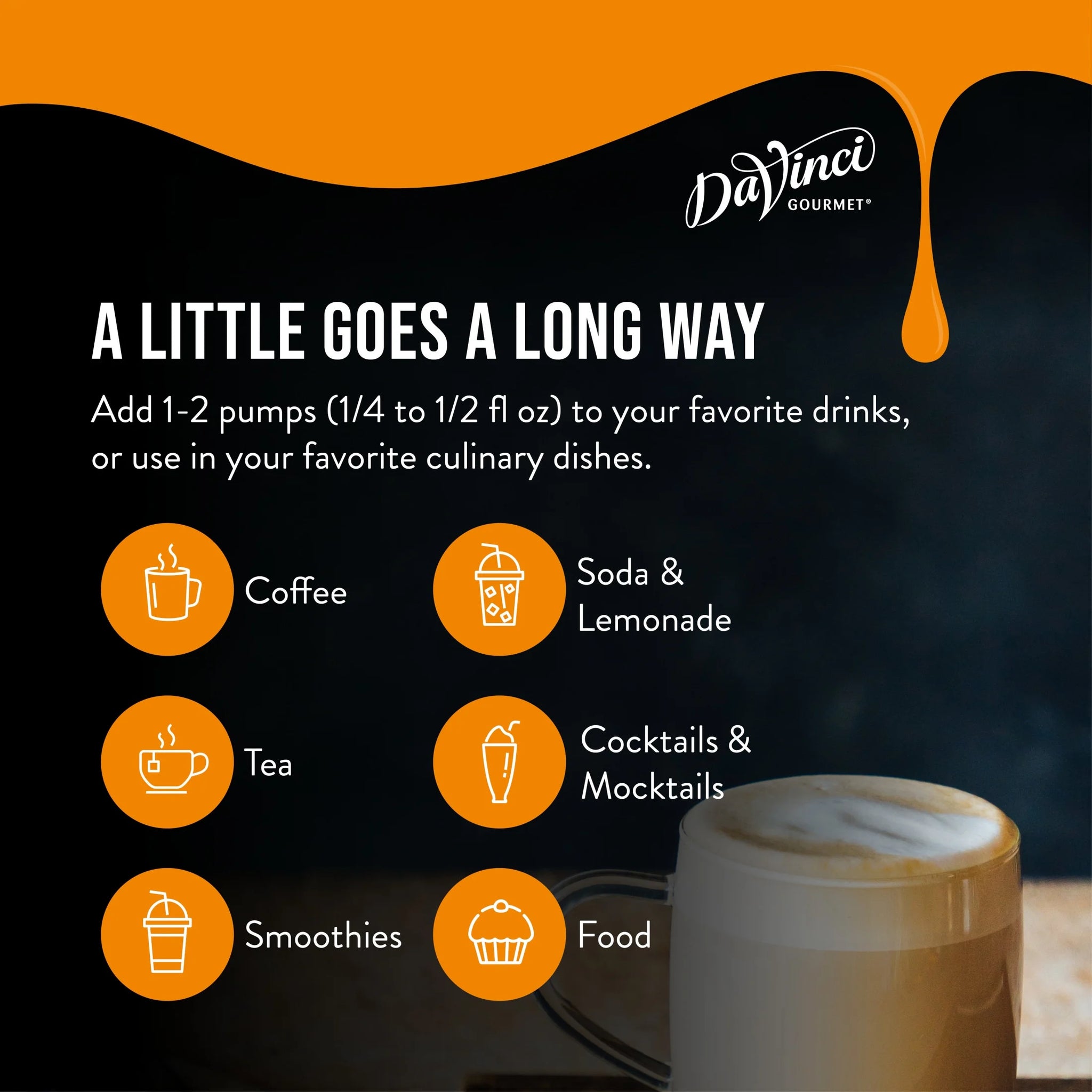 DaVinci Gourmet Classic Caramel Syrup is crafted in small batches and contains the taste of slightly burnt sugar for authentic flavor inspired by classic candy caramels. DaVinci Gourmet syrup is made with the finest ingredients like pure cane sugar and natural flavors to ensure incomparable flavor and quality with every sip. Create classic pairings with chocolate, vanilla or nuts when you add a drizzle of our caramel syrup to coffee, cocktails or desserts. DaVinci Gourmet’s lineup of classic and seasonal coffee syrups are made to easily add flavor to a variety of beverage and culinary applications.. DaVinci Gourmet Classic Caramel Syrup resists curdling in dairy products, perfectly holds its flavor in hot and cold beverages and is Kosher-Pareve certified.