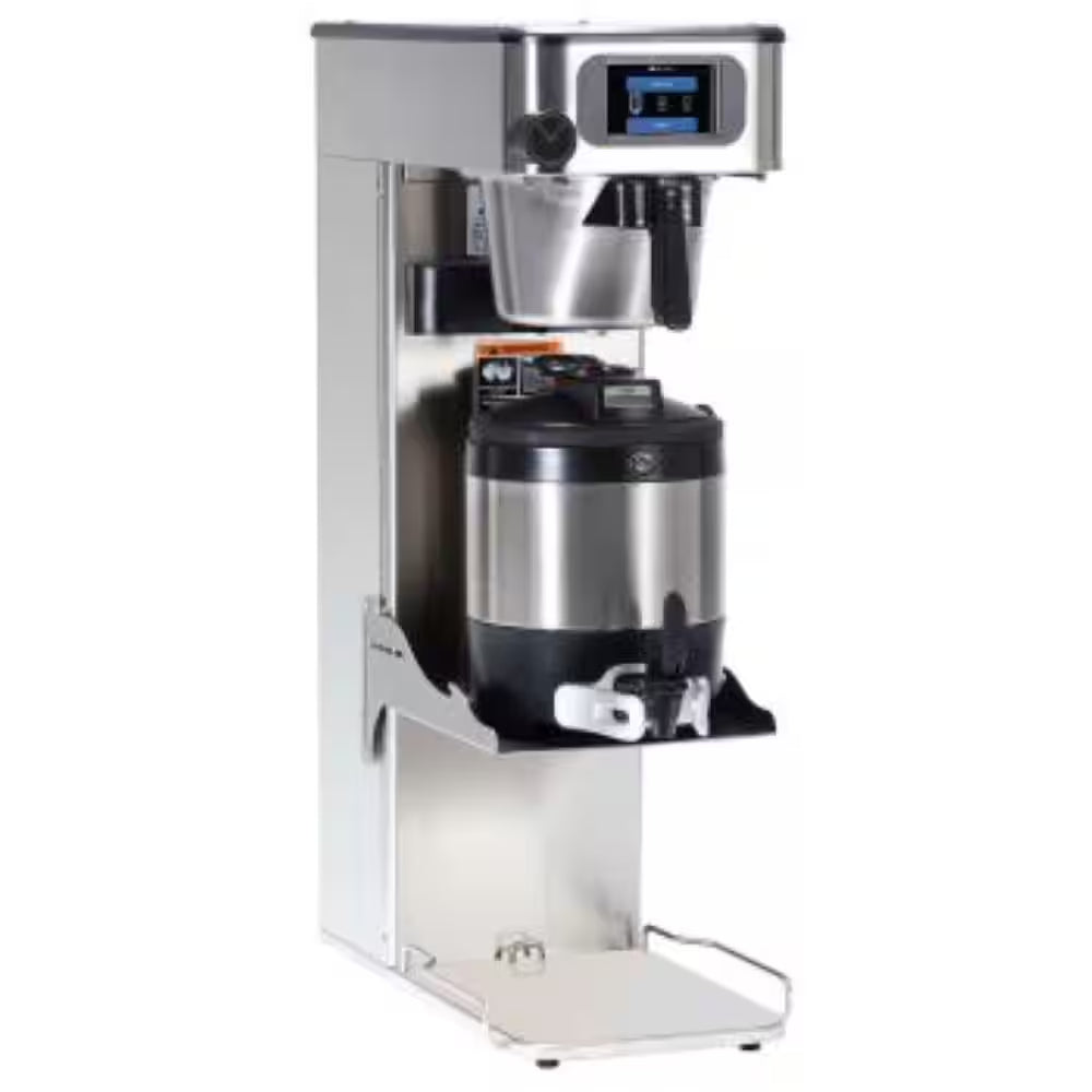 BUNN 52500.0100 ITCB-DV Platinum Edition Infusion Series Single Tea and Coffee Brewer, Updated design that features a modern look, sleek stainless steel and smooth rounded angles. Made to brew either coffee or tea, this model can brew directly into either tea dispensers, thermal carafes, ThermoFresh servers or airpots. The included fliptray can be adjusted to 3 different positions depending on the type of serving vessel you want to use. Includes features like Infusion technology that allows you to get multiple recipes from one brewer and an exclusive Peak Extraction sprayhead for ultimate uniformity of flavor extraction. An electronic funnel lock keeps the funnel in place until drip-through is complete. Also, an energy saver mode reduces temperatures in the tank during idle periods. Highly versatile, this automatic coffee brewer features a 4.3 in. color touchscreen control panel and QWERTY keypad so you can customize your brewing cycles and recipes. It can even be programmed with targeted advertising messages if you want to use this brewer on a counter where customers can see it. This brewer features pre-infusion and pulse brew to get maximum flavor extraction. This model is dual voltage adaptable and can operate at 120-Volt or 120/208-240V with outputs from 1700-Watt to 3500-Watt.