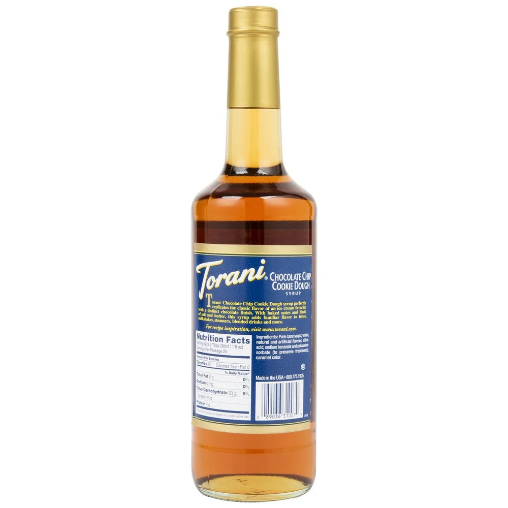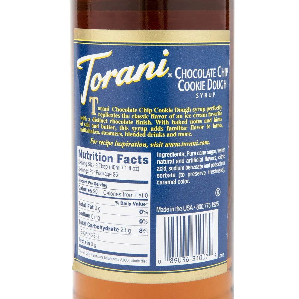 Torani Chocolate Chip Cookie Dough syrup brings the flavor of sweet unbaked cookies to your creations. Made with pure cane sugar and formulated to hold up in heat and resist curdling in dairy products. Infuse flavor in your coffee, espresso, tea, frappes, smoothies and more. Torani syrups are gluten free, kosher certified, and made in San Francisco California.